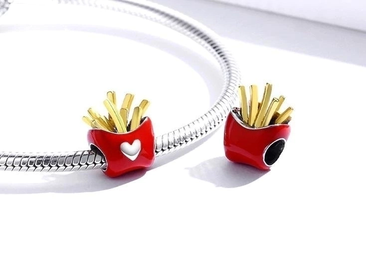 Berloque Batata Frita Fravie confeccionado em prata 925.