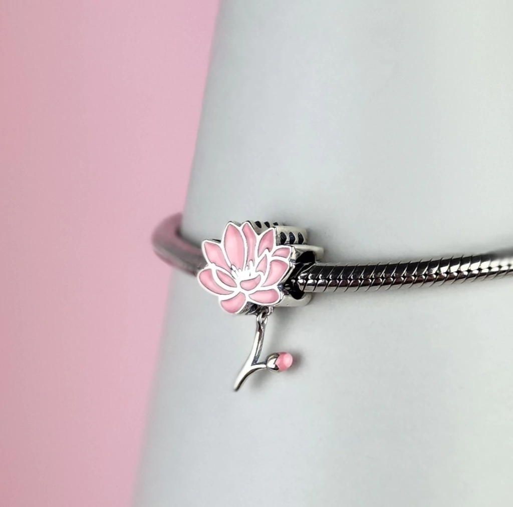Inspirado na flor de lótus, este berloque representa o florescer sereno da alma que, mesmo em meio às águas turvas, encontra luz e leveza.