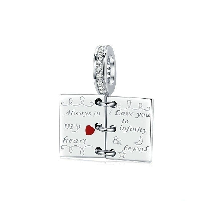 Berloque Livro do Amor confeccionado em prata 925.