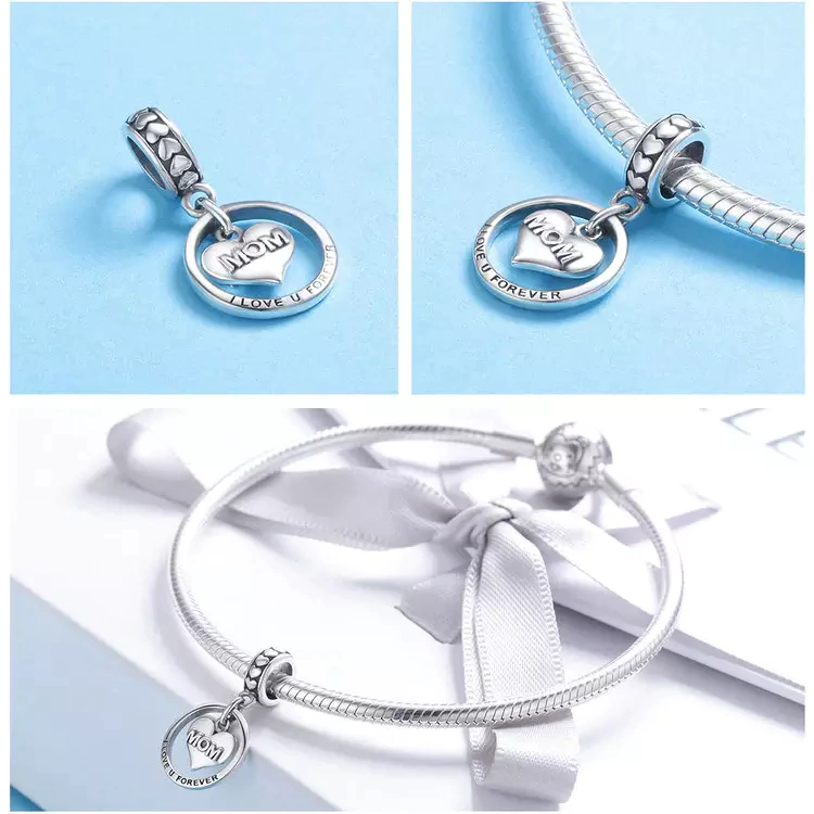 Forjado em prata 925, este berloque pendente homenageia o amor que existe entre mães e filhos com delicadeza e simbolismo. Um aro circular representa o ciclo eterno do cuidado, dentro do qual repousa um coração em relevo com a palavra “MOM” gravada. Abaixo, a inscrição “I LOVE U FOREVER” reforça o sentimento que atravessa o tempo e nunca se esgota. Na argola superior, corações em sequência formam um caminho de ternura, como passos dados lado a lado, mãos dadas no invisível.
