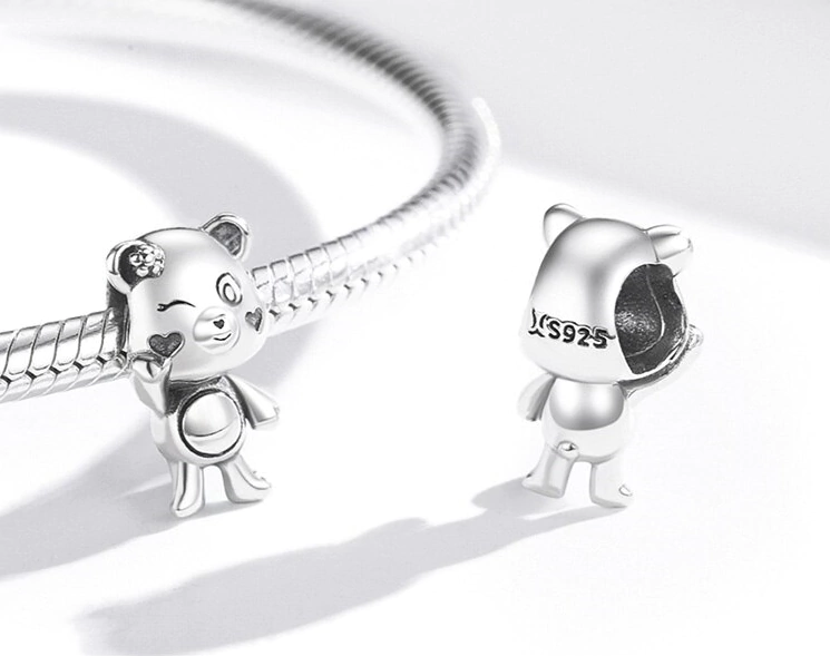Forjado em prata 925 com acabamento polido e detalhes esmaltados, este berloque representa um ursinho de expressão cativante, com corações nas bochechas e postura amigável. Seu design é lúdico, mas não infantil, é um símbolo da ternura que permanece, da doçura que atravessa os dias duros como um lembrete sutil de afeto, amizade e acolhimento.